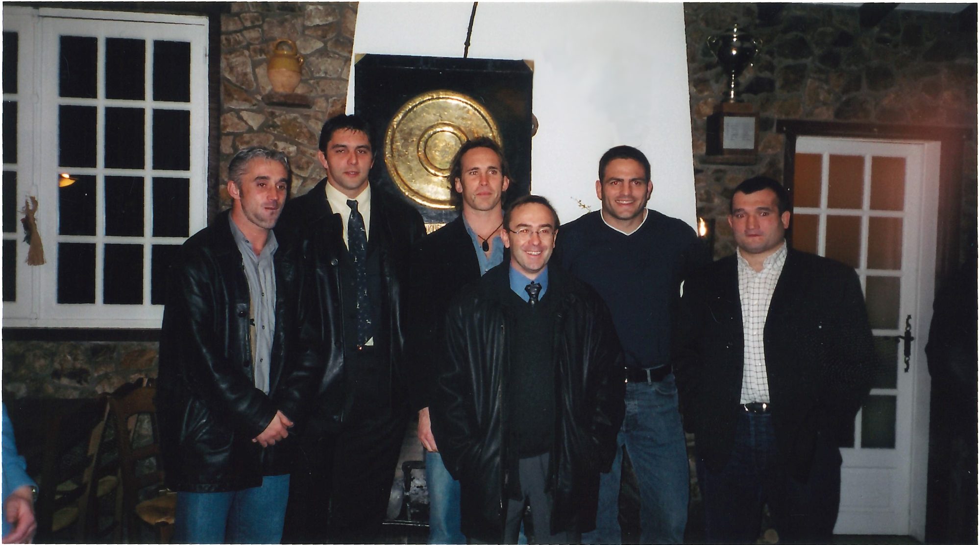 Photo: Frédéric LAURENT, Directeur commercial de VIM est entouré des Champions de France de rugby. (de g. à d.: Philippe Bernat-Salles, Jean-Philippe Versailles, Jack Isaac, Thomas Lièvremont, Jean-Michel Gonsalès…..Sans oublier le célèbre bouclier de Brennus !